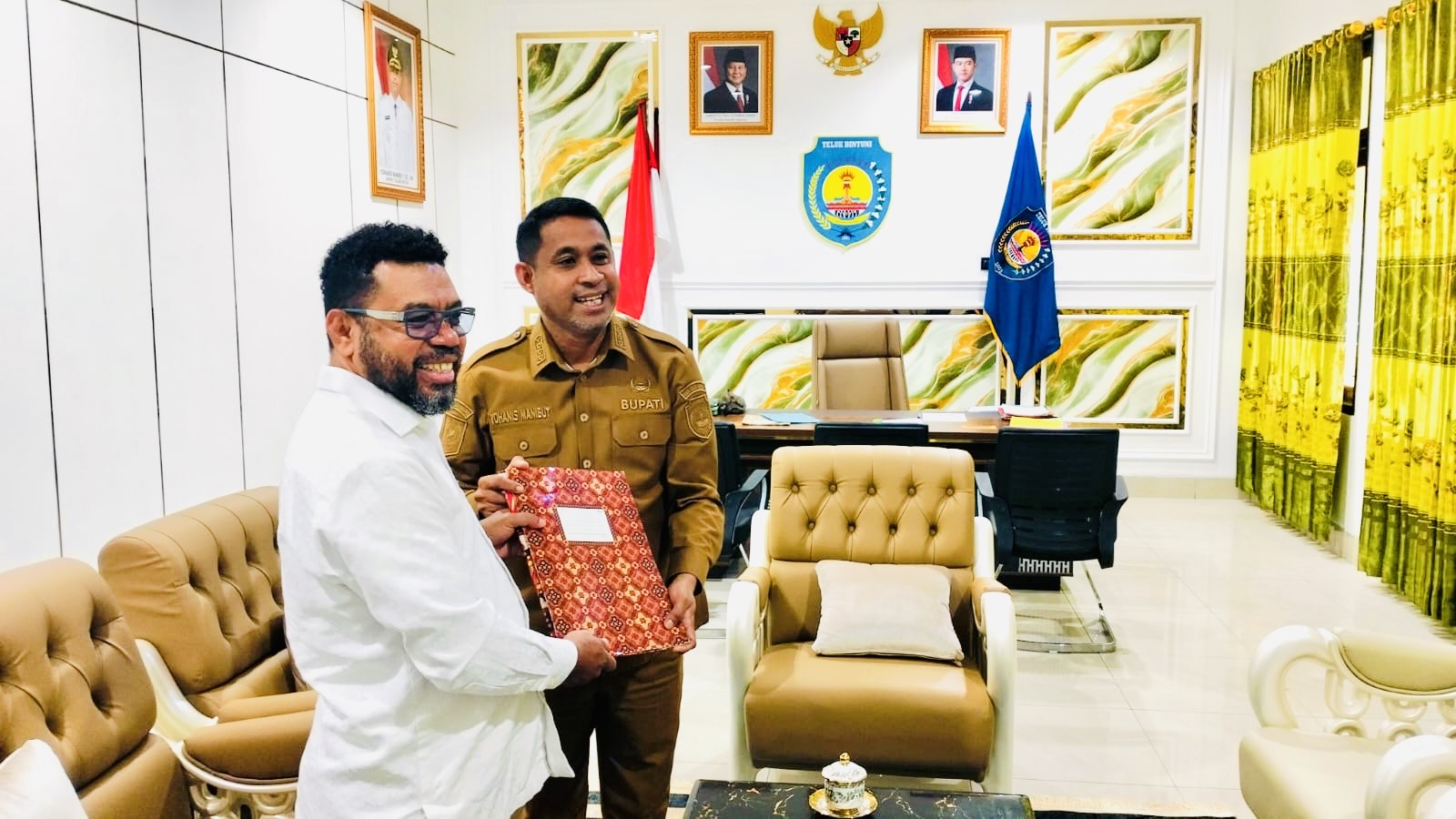 Ketua Sekolah Tinggi Ilmu Hukum (STIH) Manokwari sekaligus Ketua Komite III Dewan Perwakilan Daerah Republik Indonesia (DPD RI), Dr. Filep Wamafma, melakukan kunjungan kerja dan pertemuan dengan Bupati Teluk Bintuni, Yohanis Manibuy, pada Senin (16/6/25).