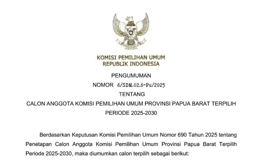 Dua Komisioner KPU Papua Barat Terpilih Kembali Periode 2025–2030