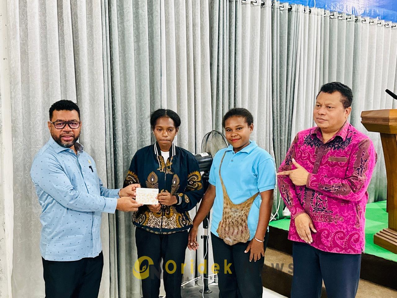Ketua Komite III DPD RI, Dr. Filep Wamafma menyerahkan beasiswa KIP Kuliah di Kampus Universitas Caritas Indonesia
