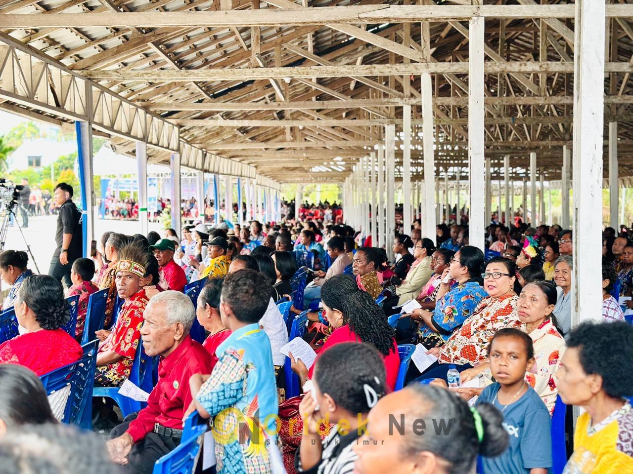 Suasana ribuan masyarakat saat mengikuti ibadah perayaan HUT ke-171 Pekabaran Injil di tanah Papua, Kamis, (5/2/26).